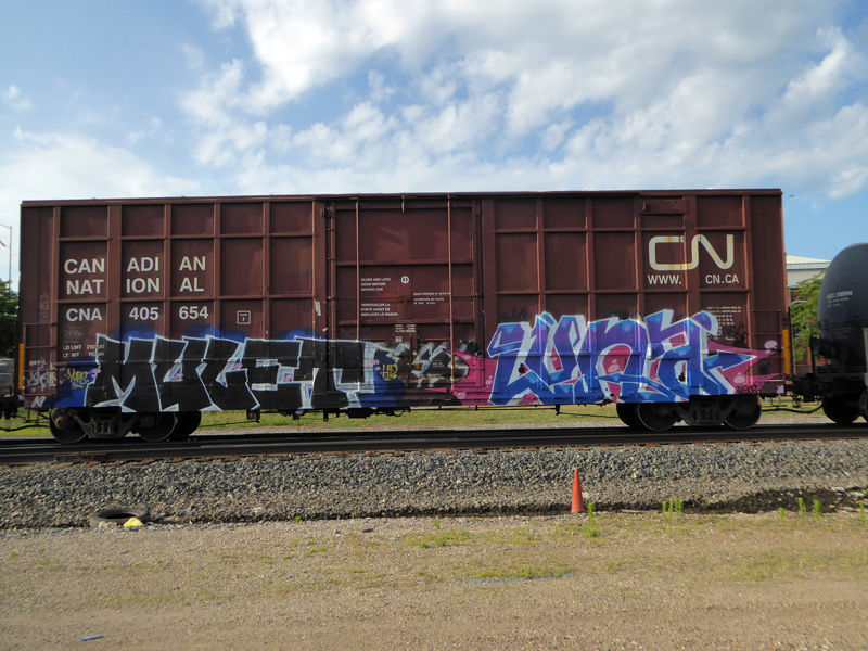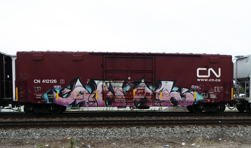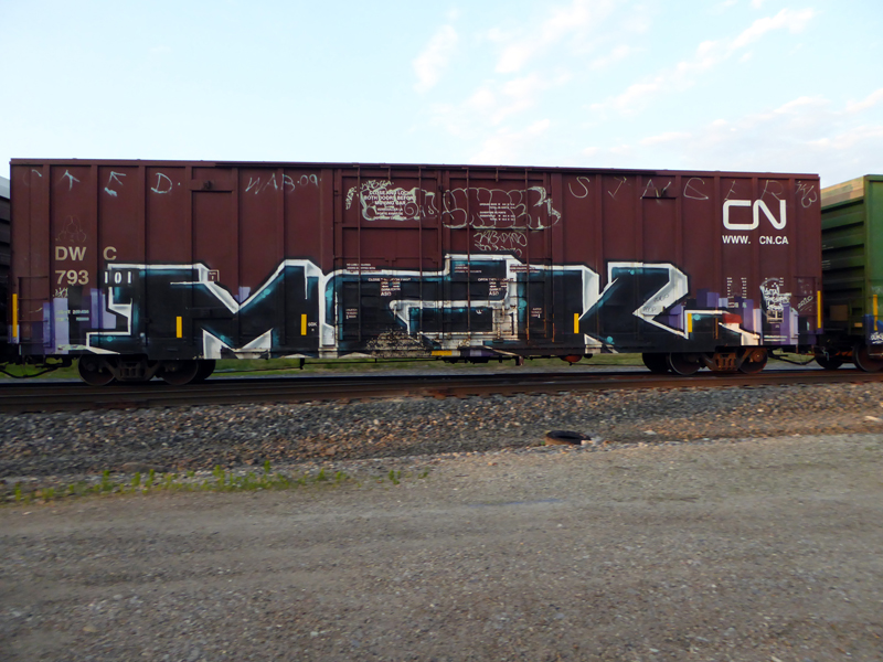 More recent catches rolling through Richmond, Indiana. As a young dude, the rails were my only source for seeing graffiti from all over in real life. A rolling gallery. I still love it, and there is so much more graffiti now. I do enjoy seeing fresh and new pieces, but I am always on the look-out for those crusty classics, too.