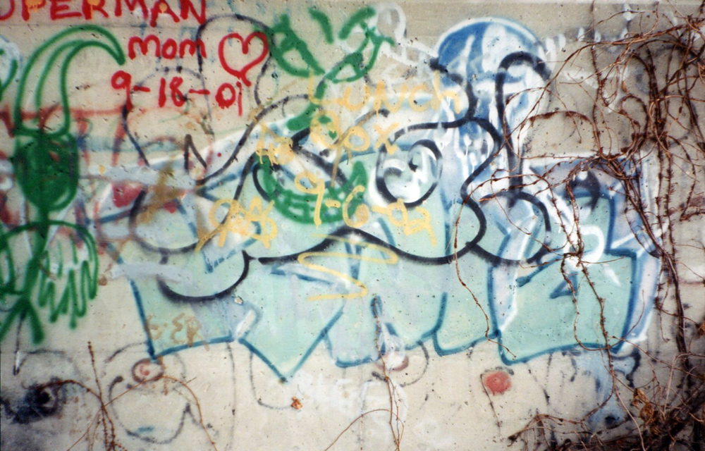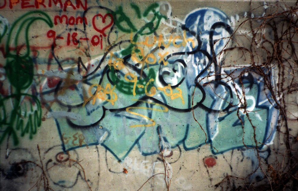 Here are a couple scans of what remained of a Kwiz piece from the 1990s underneath an overpass. The photos are from the early 2000s. I adjusted the contrast on the middle one to help it pop out a little.