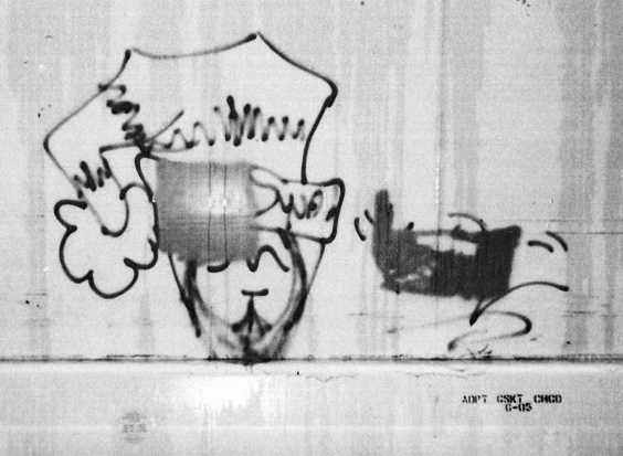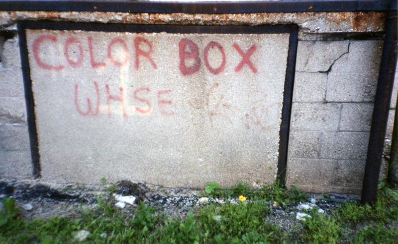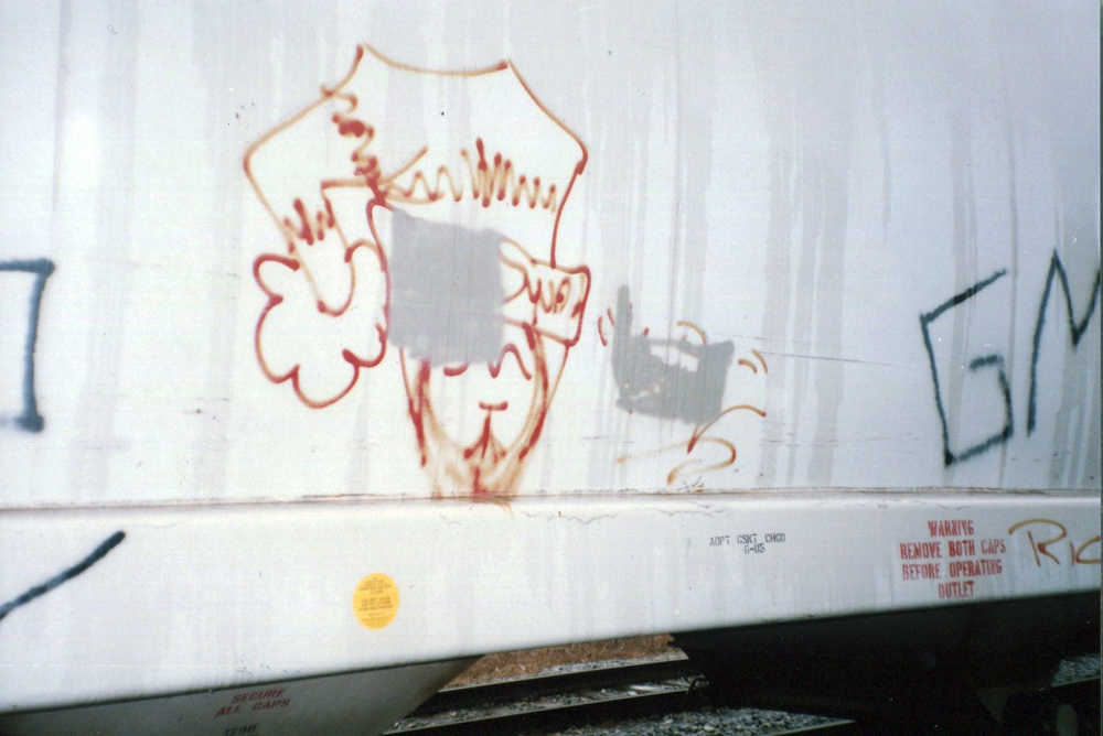 In 2011 or so, I was shooting only film, and didn’t have a working digital camera. On a rainy day I caught a character outline on a hopper by Kwiz, circa mid 1990s. Being the local graffiti nerd I am, I was very stoked. I’m not sure if many freights were painted in Richmond during the early/mid 90s, but maybe a few. This one was probably painted by convenience, and looks like it was kind of rushed. A block away, there used to be a tag in red that might have been during the same time frame. (It’s barely visible in the last photo, underneath the word “BOX”.)