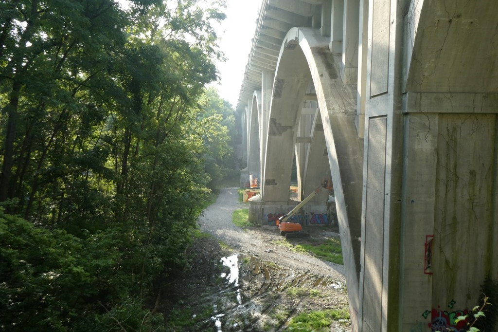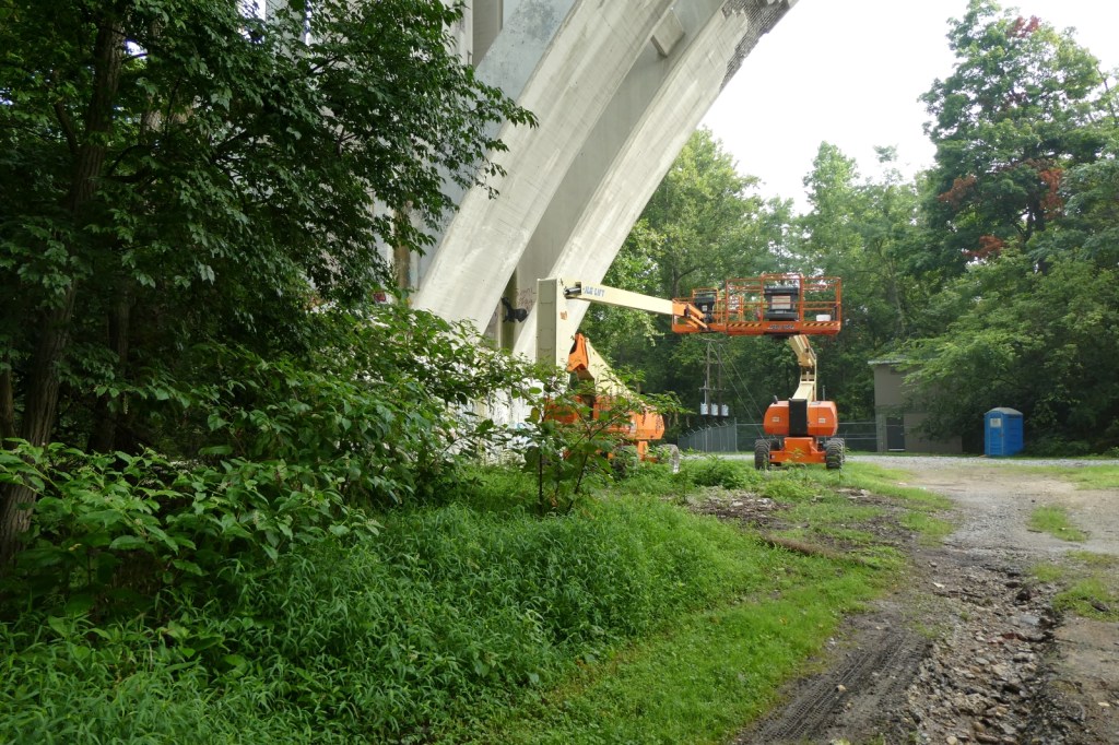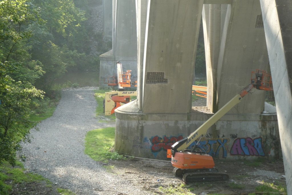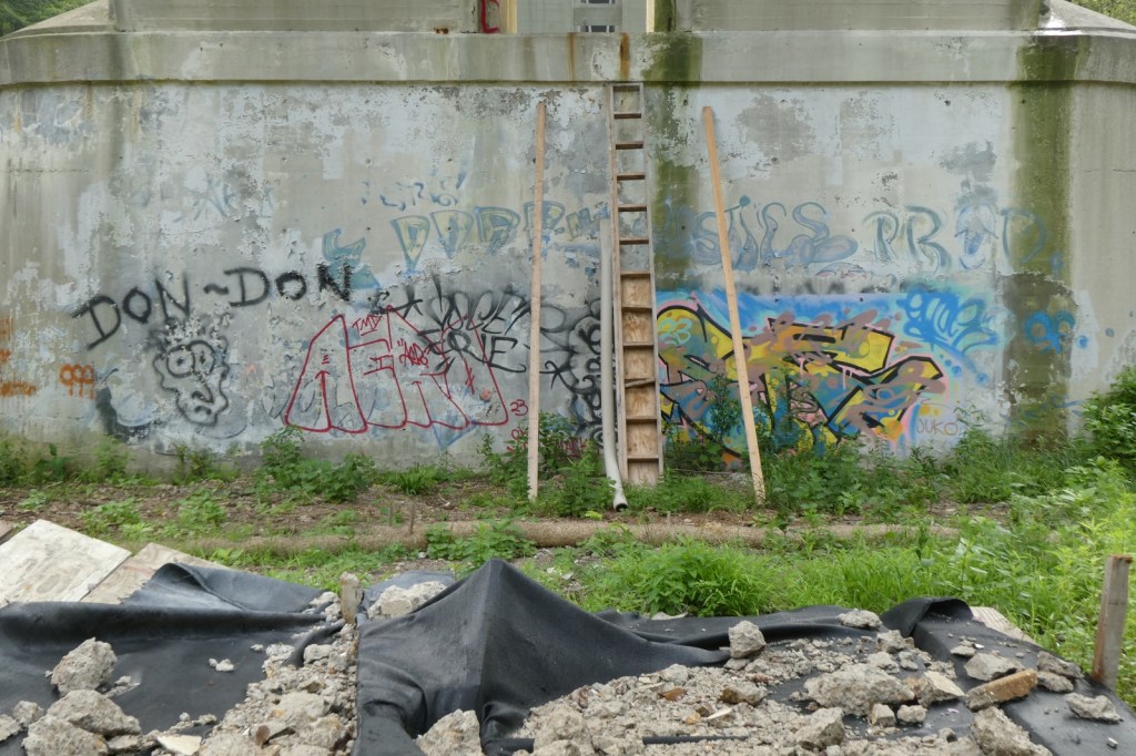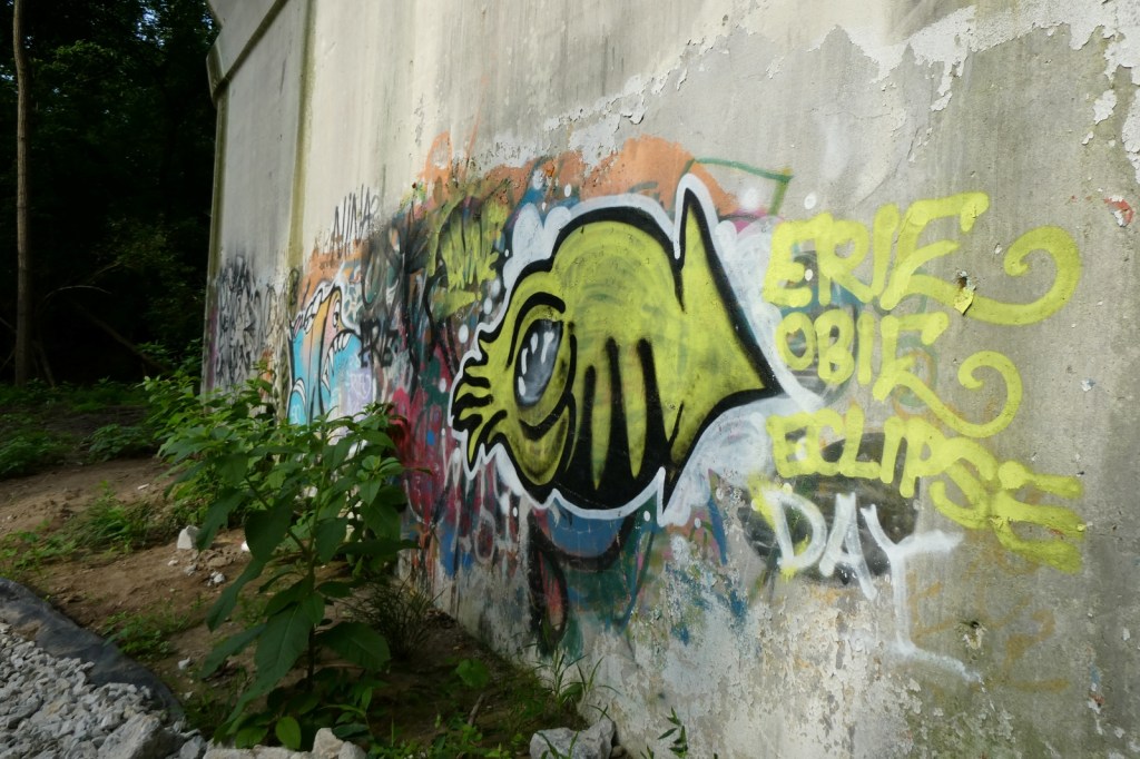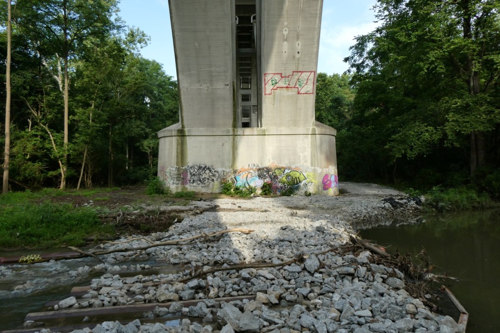 The “G” Street Bridge, originally known as the South Side Bridge was completed in 1932 and it was updated and modified in 1990. In 2024, the G-Street bridge was closed for an extended period of time to repair and resurface the deck, arches, sidewalk, and street. Much of the trees and brush underneath it were cleared, opening up ancient graff barely holding on underneath it all, as well as newer pieces and throw-ups. The repair work appears to be done, but I imagine the bridge will be repainted at some point. The epic “Dark Justus” production from the late 90s (Final Image) is still clinging to the surface as the sun and weather now rapidly deteriorates it (Images 9-13). The “Seal of Approval” still hangs on tucked away (Image 8).