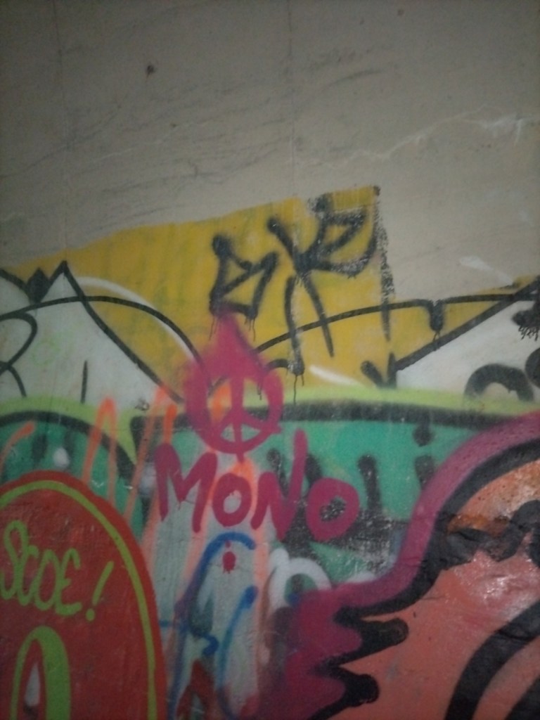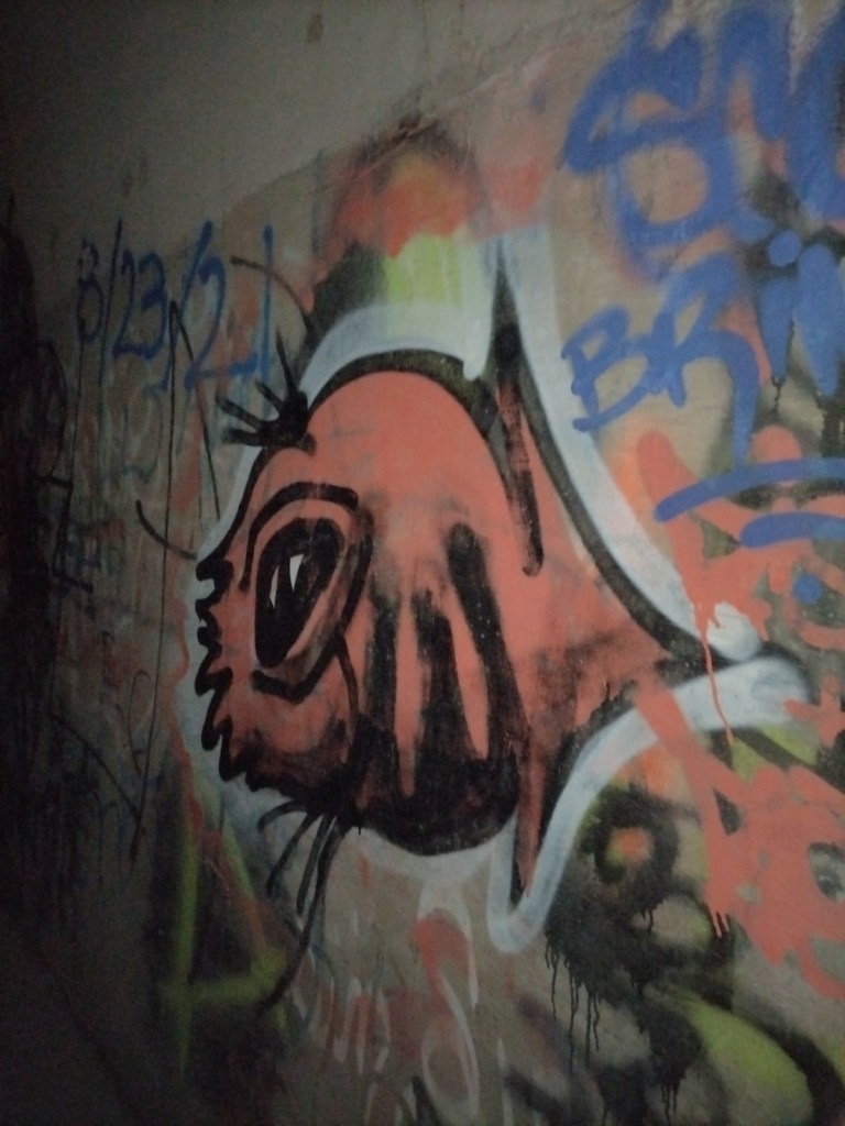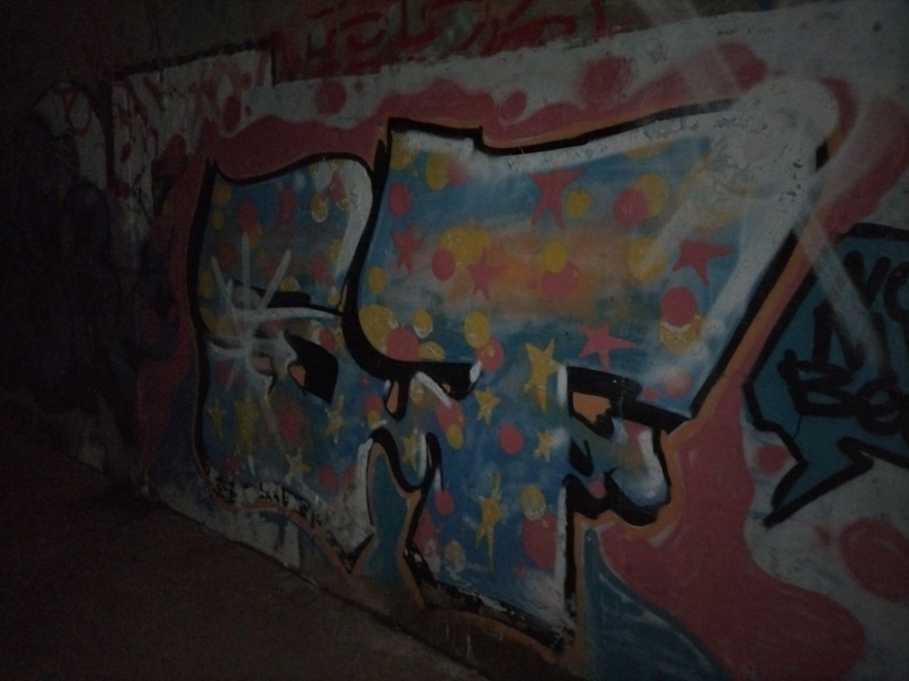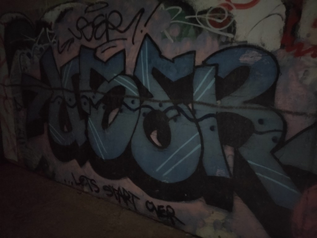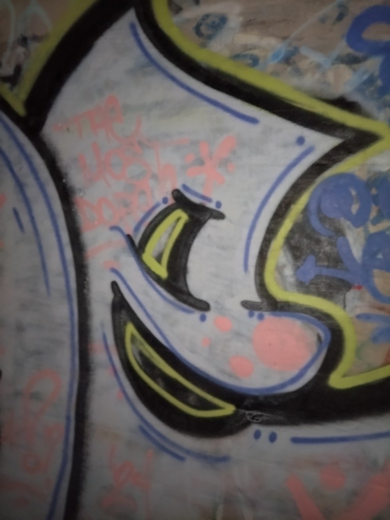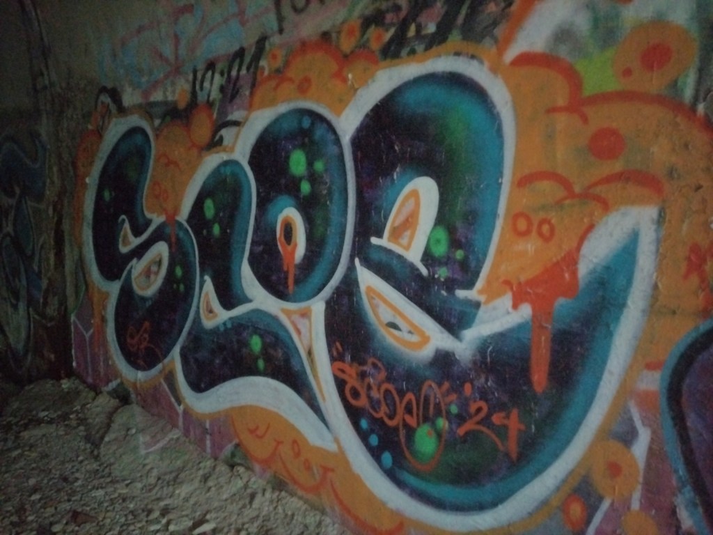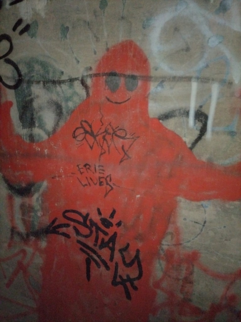 Here are some low-quality smart phone pictures from Sept. 2024 using the flashlight option to document one of the dark tunnel spots. The photos aren’t great, and a lot of the stuff is dissed, but at least you can see what you’re looking at it. The SUFR fill-in is from 2013 and is over a SUFR roller from 2000. The Kwiz, “Skills Flow Like Ink” piece (under “Jesus Saves”) was still visible at the time of the photos, but shortly after it was completely covered, unfortunately. I’ll be making a separate post about that one. Also visible is Erie, Rest in Piece.