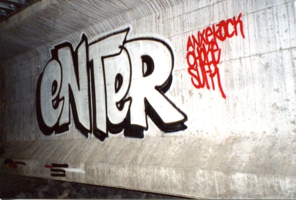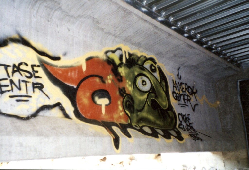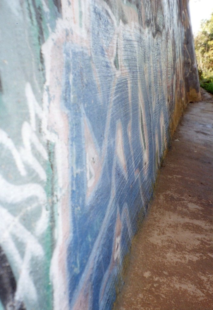 The bridge over Clear Creek on National Road West was demolished and replaced 2010-2011. Part of the original lip/walkway underneath remains, but the bridge itself if much lower underneath. The original bridge was a local piecing spot. 1-2: scanned prints, “Wack w/ Scrap”, Sufr over Sufr over Senoz over Sone over Kwiz. The Kwiz piece and character was the freshest thing there, but was covered up, unfortunately. OG bridge, 3-4: scanned prints, Anxer and Enter, new bridge circa 2011/12. The rest: digital photos, Mar 2017, showing the remaining original lip/walkway.