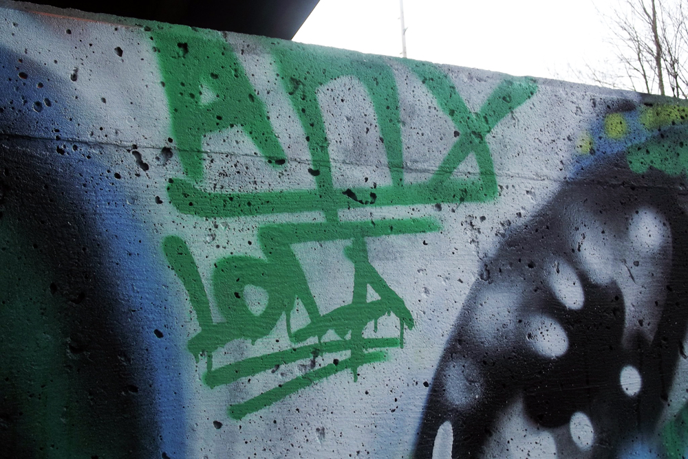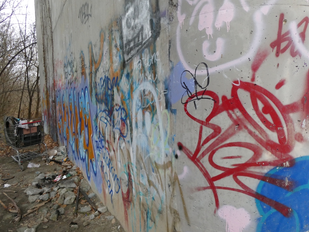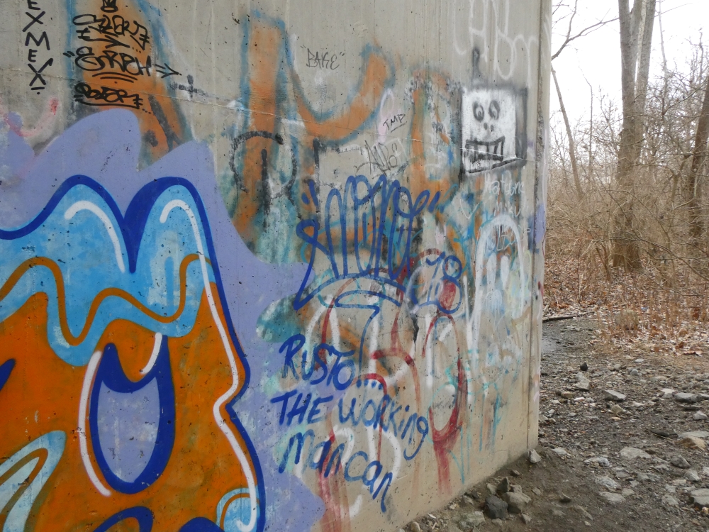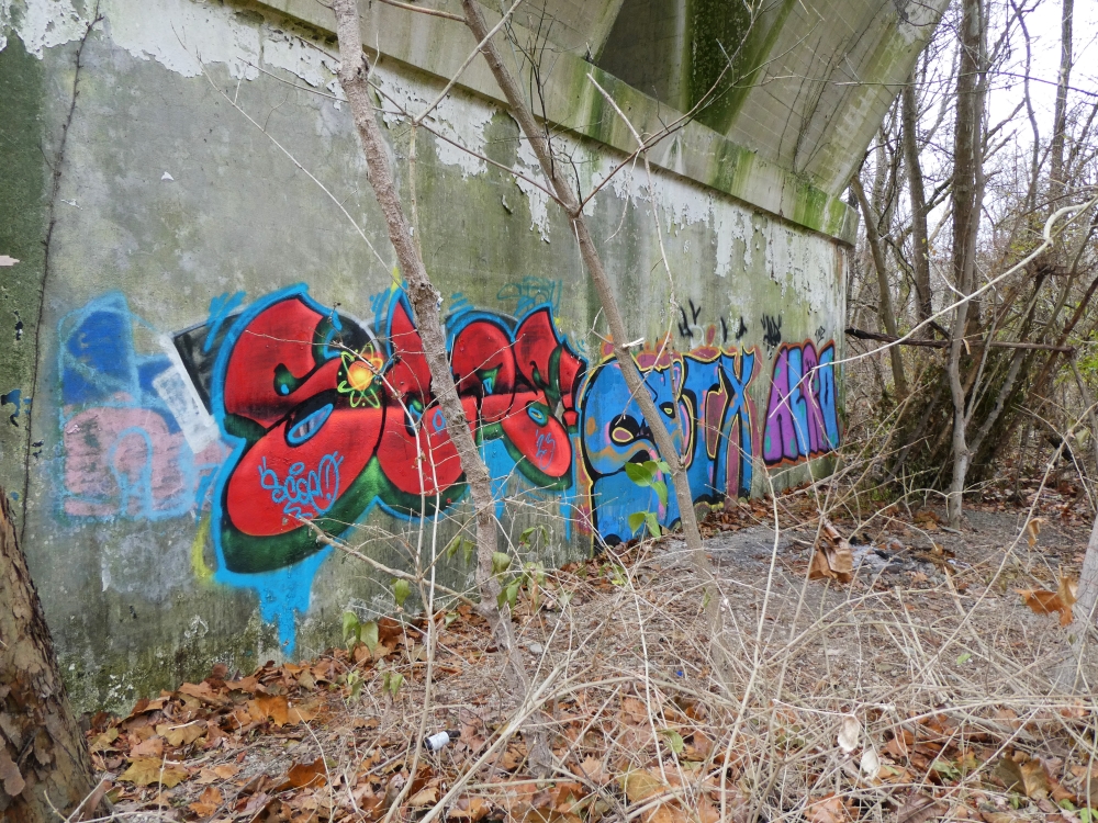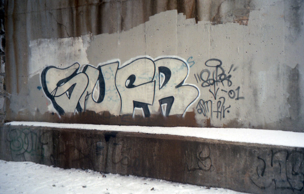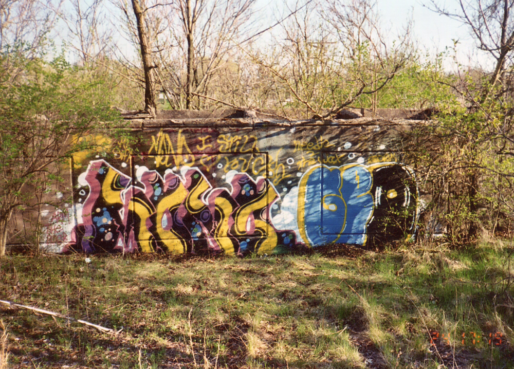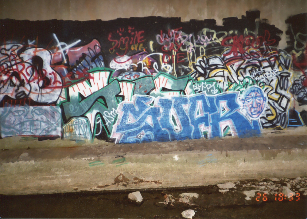 Outlasting the buff, part of a “Pore” outline from the mid-90s peeks out, barely visible, under a now NS railroad bridge. Above is a Mono silver. I’ve included a Sufr fill-in from 2001, where the Pore outline is un-buffed towards the left, and another Pore outline flick taken around the same time.