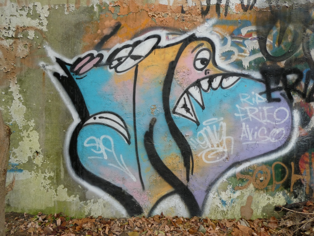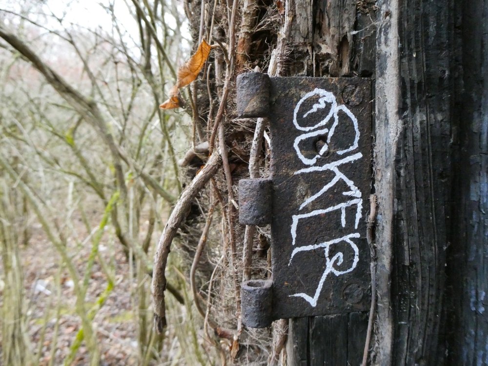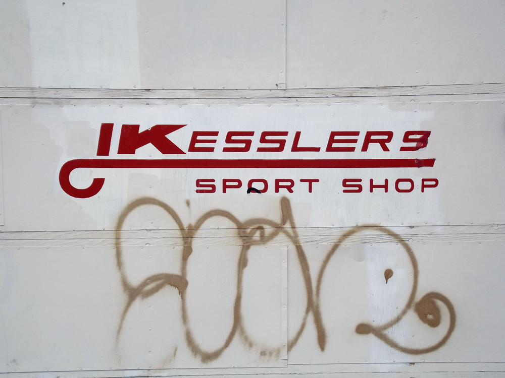 An old Choke piece still hanging on, not sure of the year. The other photo is an old SOS outline, probably from the late 90s, barely visible.