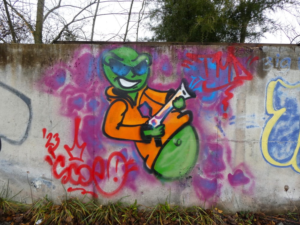 Here are a few scans of flicks from the archives of early 2000s writer, Geo. Clockwise from top: Mono Geo pieces 2003. Old Sufr piece from 2001 under Nat’l Rd West Bridge at Clear Creek, over a very early and dissed Sufr piece over Sone and others. Underneath the “SO” throw-up and the rest of the mess was a dope Kwiz piece with signature character in beanie that proclaimed, “The Kings Are Back.” (My flick of this Kwiz piece untouched did not survive.) and finally Mono and Geo throwups beneath an overpass circa 2003 or 2004. If you have old photos of Richmond, Indiana graff, please send them to richmondindgraffiti @ yahoo dot com. Credit will be given, thank you.