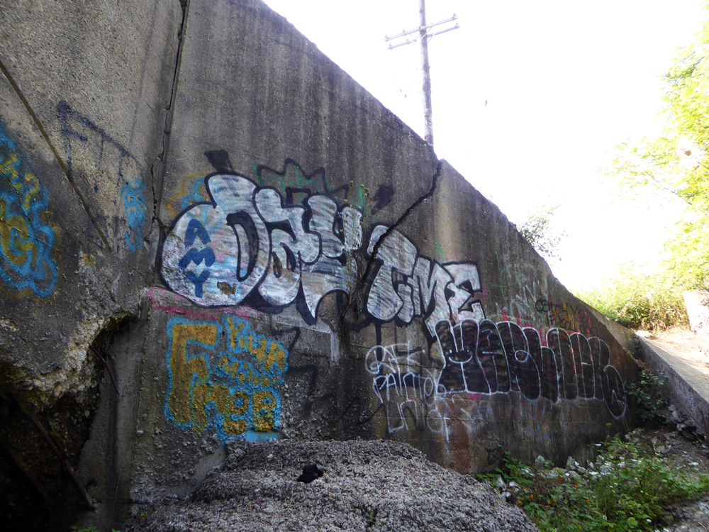 A couple of old tags by KAA$. The first pic was taken in the early 2000s, the 2nd taken in 2013. Not sure is it is pronounced “Cash” or what. But one of these tags was dated 1989 from what I can tell, which makes it the earliest dated non-civilian graffiti tag that I know of in the city.