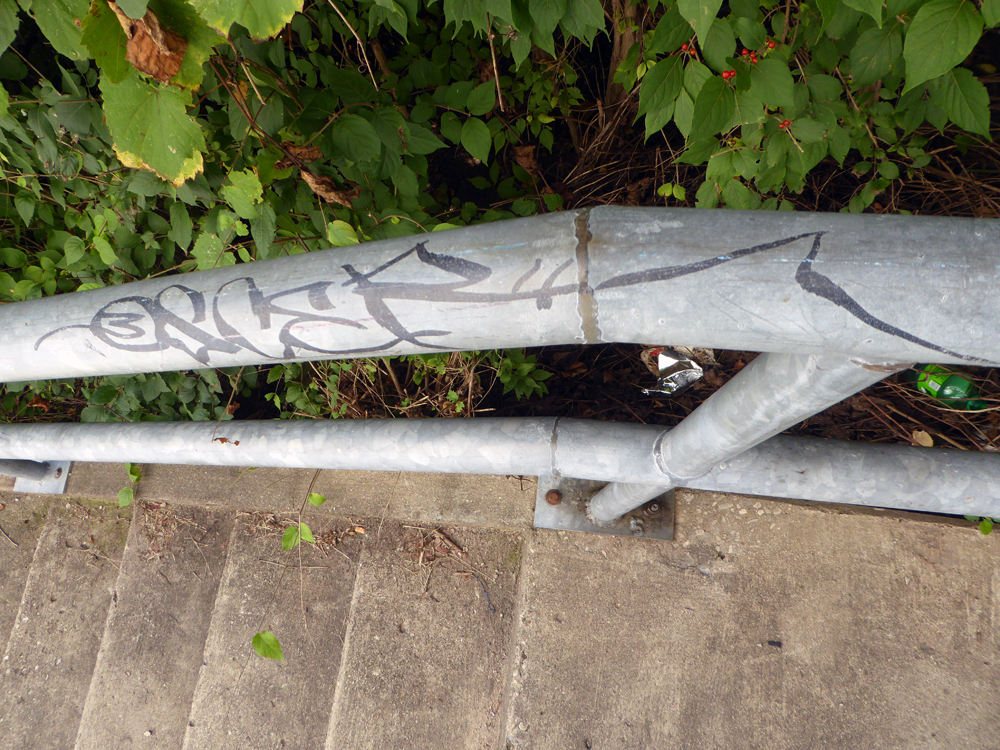 Here is a picture from 2013 of a barely visible Hip2 tag. This spot has since been demolished. Also, see these other two posts about the same artist…